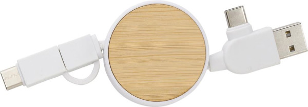 Verlängerbares ABS-Ladekabel mit Details aus Bambus. Mit USB-C, Lightning und USB-A. Einzeln... mehr